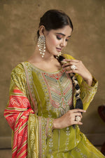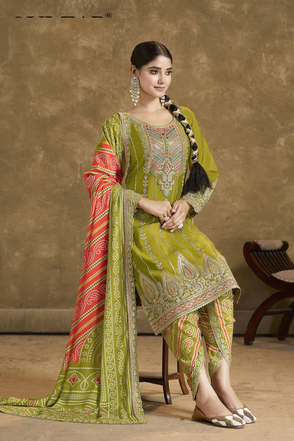 Aarshi Fashions Light Green Embroidered Bandhani Dhoti Wedding SuitProduct Details Package Details : 1 Top::1 Bottom::1 Dupatta Kameez Length : 4...
