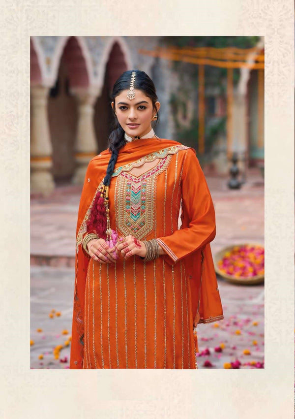 Aarshi Fashions Orange Palazzo Wedding Suit