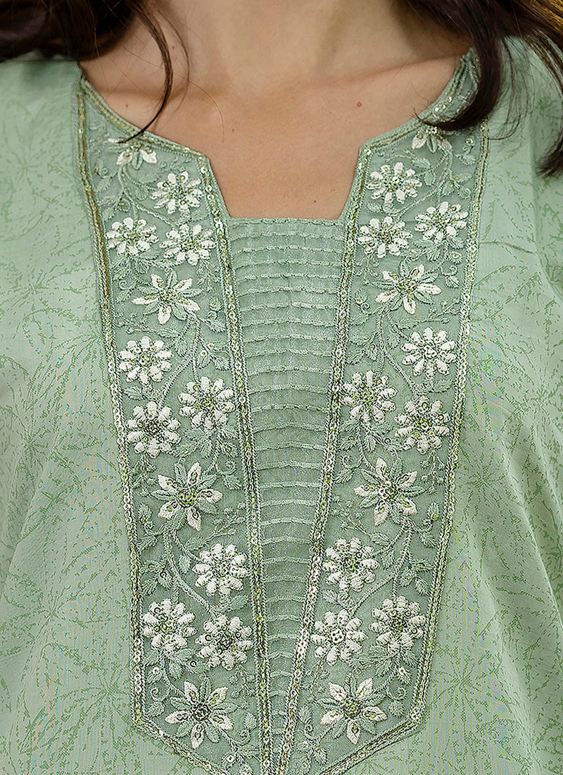 Vellora Silk Blend Pista Casual Wear Embroidery Work Readymade Salwar SuitProduct Details: Pack Contains : 1 Top::1 Pant::1 Dupatta Length of Kurta...