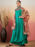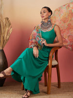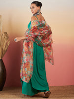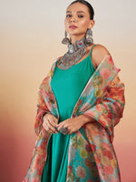 InWeave Emerald Green Strappy W Green Organza Dupatta Set