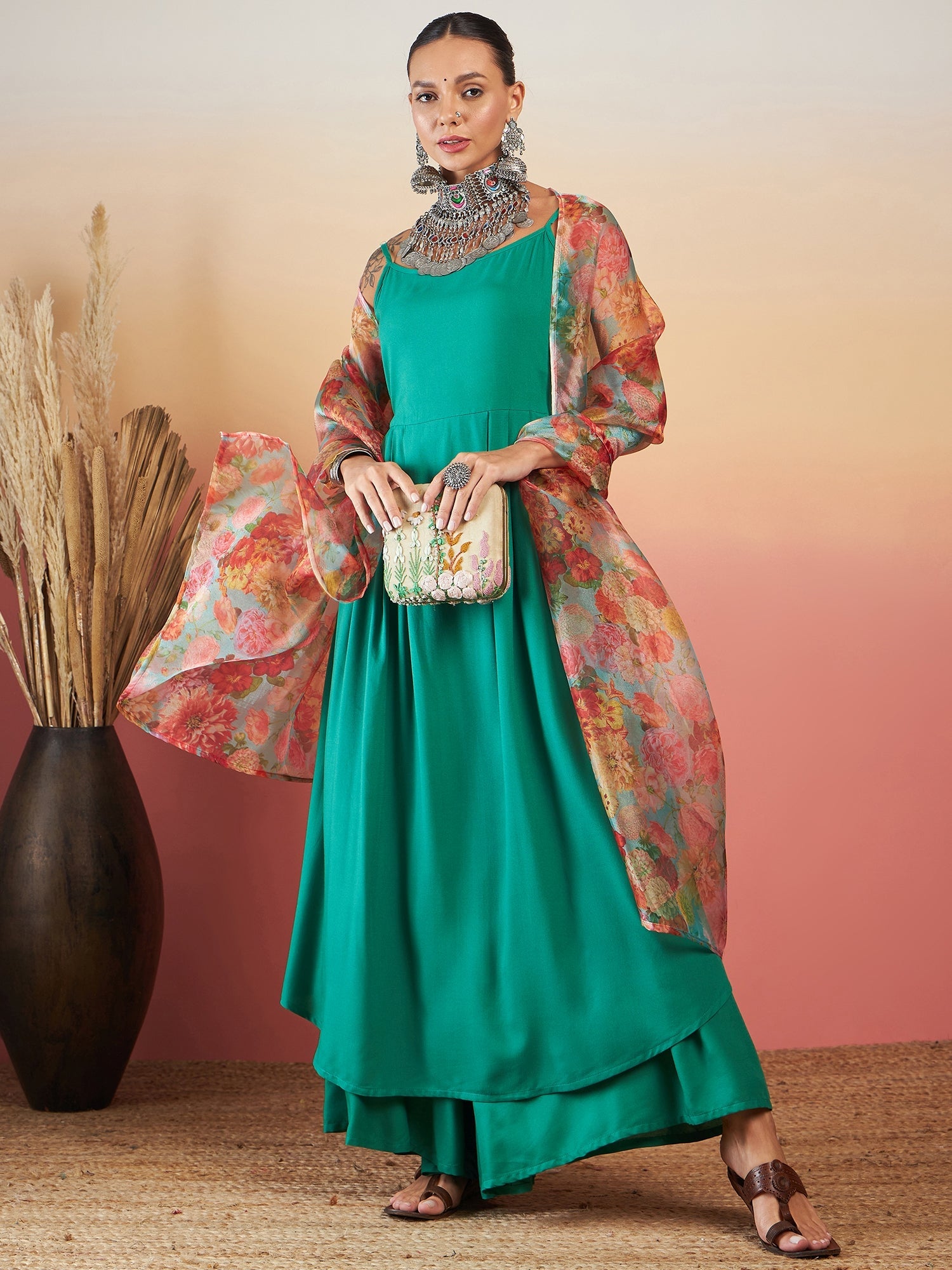 InWeave Emerald Green Strappy W Green Organza Dupatta Set - Distacart