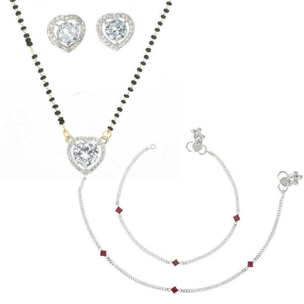 AanyaCentric Gold-Polished Mangalsutra Pendant Earring Set & Silver Plated Anklet