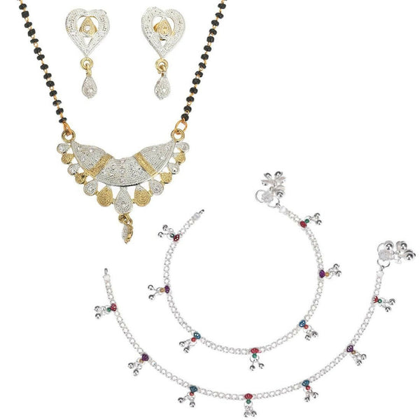 AanyaCentric Gold-plated Mangalsutra Pendant Earring Set & Silver Plated Anklet - Distacart