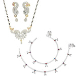 AanyaCentric Gold-Polished Mangalsutra Pendant Earring Set & Silver Plated Anklet