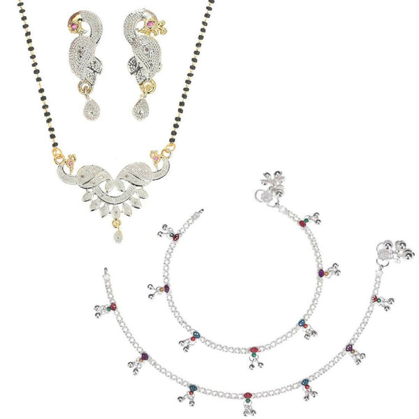 AanyaCentric Gold-plated Mangalsutra Pendant Earring Set & Silver Plated Anklet - Distacart