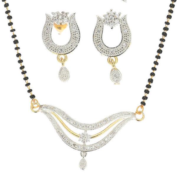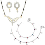 AanyaCentric Gold-Polished Mangalsutra Pendant Earring Set & Silver Plated Anklet