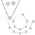AanyaCentric Gold-Polished Mangalsutra Pendant Earring Set & Silver Plated Anklet