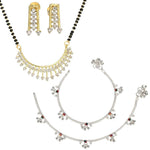 AanyaCentric Gold-Polished Mangalsutra Pendant Earring Set & Silver Plated Anklet