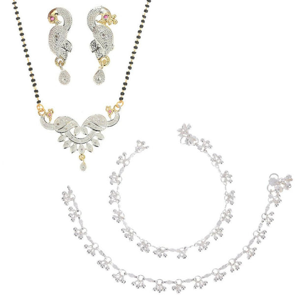 AanyaCentric Gold-plated Mangalsutra Pendant Earring Set & Silver Plated Anklet - Distacart