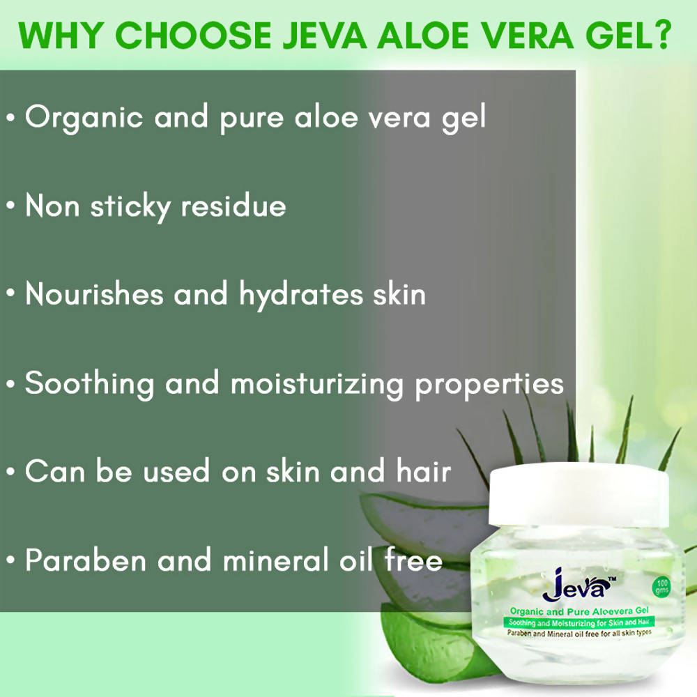 Jeva Organic And Pure Aloe Vera GelIngredients:Aloe VeraHow to use: Aloe Vera gel can be used as a day moisturizer. Can be used to treat insect bit...