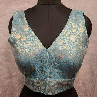 Kia Fashions Blue Banarasi With Gold & Silver Weave Readymade Blouse