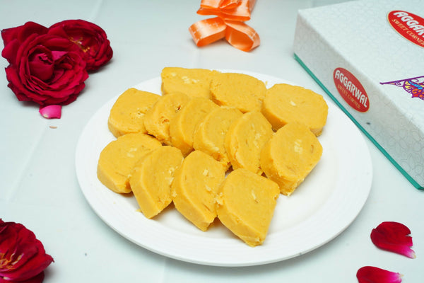 Patisa is a crispy and flaky Indian sweet made from gram flour (besan), sugar, ghee, and cardamom. It has a delicate, melt-in-the-mouth texture with a light, airy consistency. Often garnished with nuts, Patisa is a popular treat during festivals and celebrations.