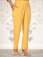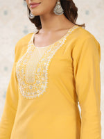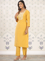 Ode by House of Pataudi Yellow Thread Work Yoke Design Kurta With Trousers