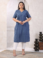 Janasya Dark Cotton Geometric Straight Kurta - 3XL