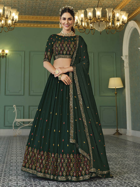 Myra Green Georgette Embroidered Designer Lehenga - Distacart