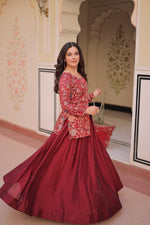 Lorenvalley Fashion Maroon Pure Simmer Vichitra Kali Pattern with Canvas Patta Lehenga Choli - One Size