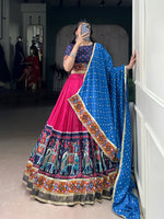 Lorenvalley Fashion Pink Tasar Silk Print with Foil Work and Real Mirror Gamthi Work with Lace Touch Up Lehenga Choli with DupattaAbout the product...