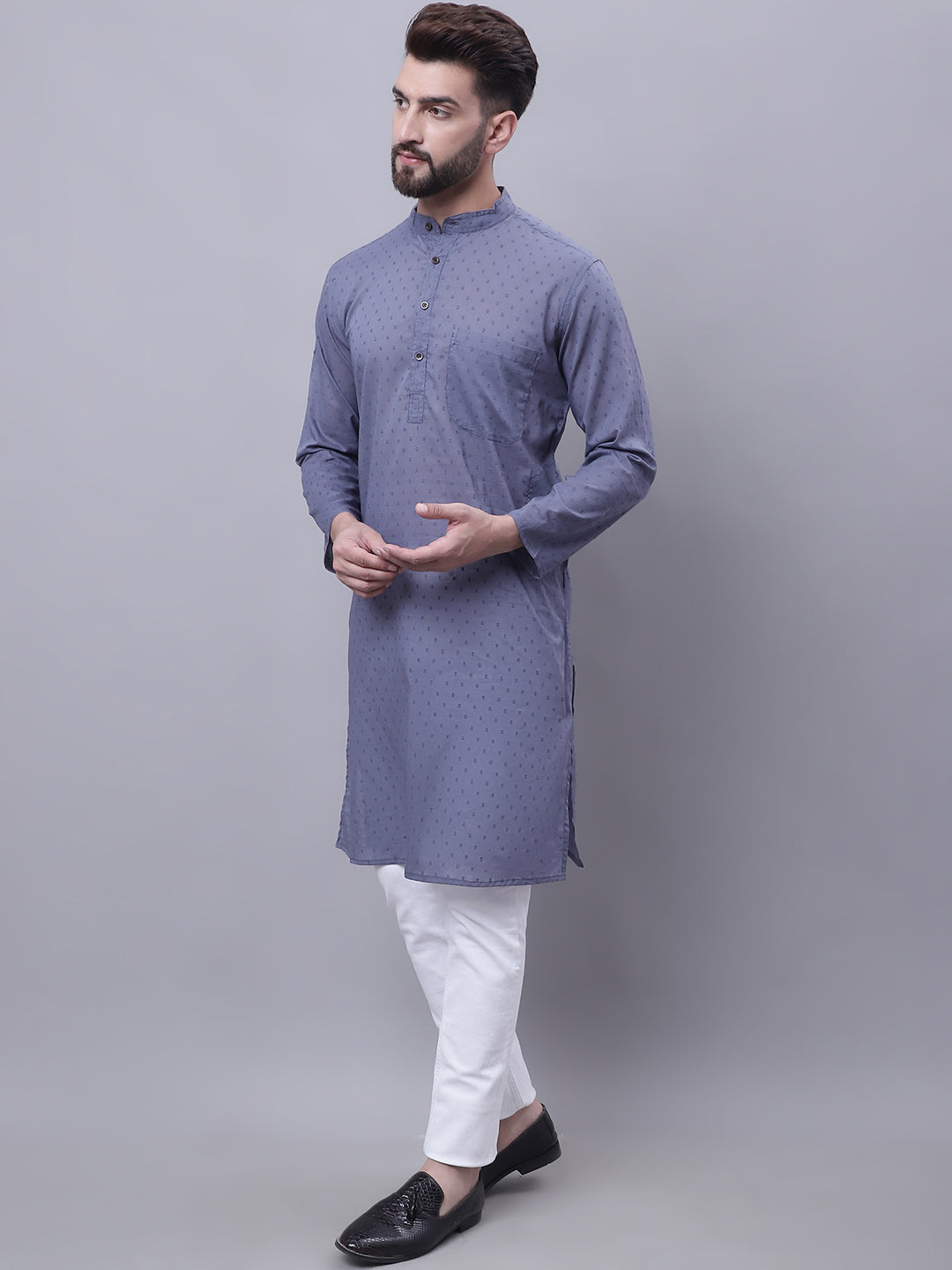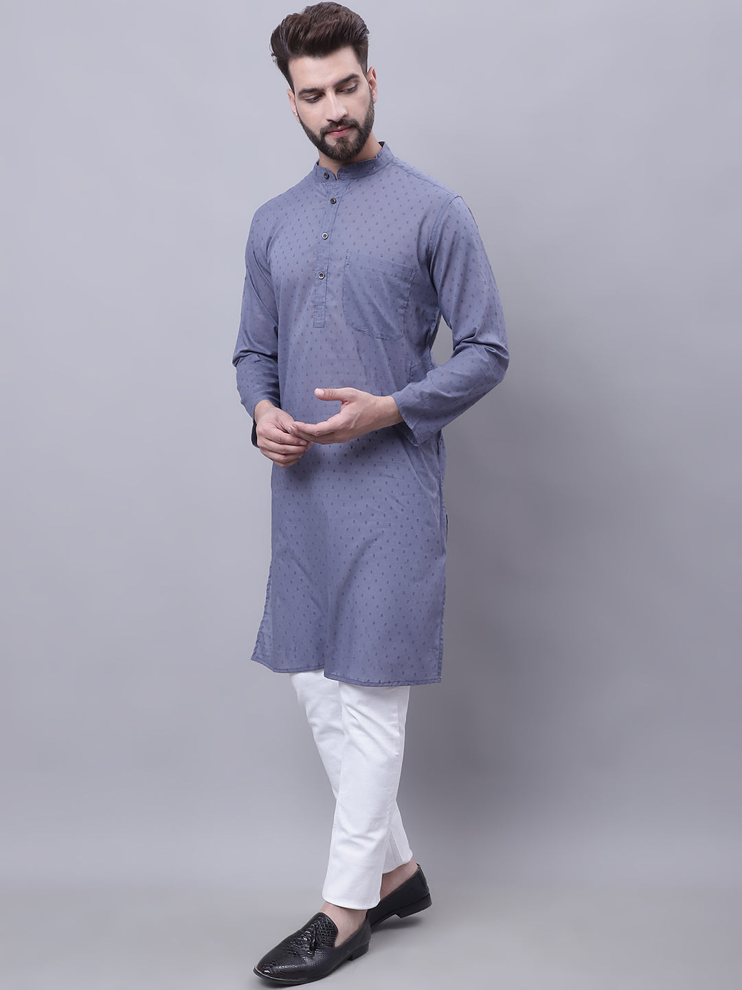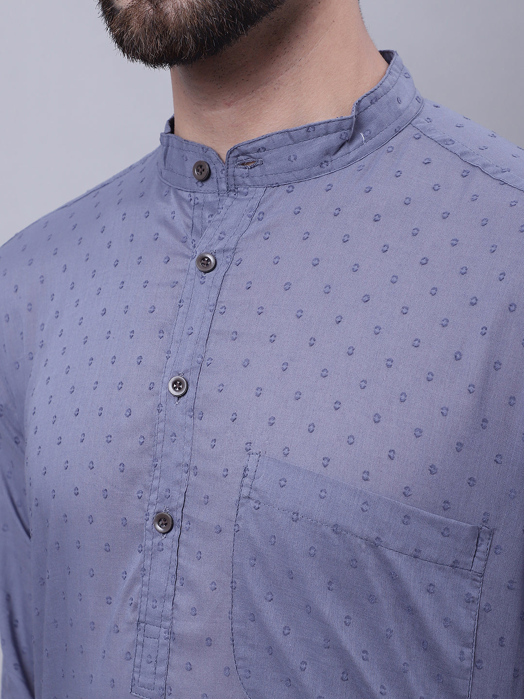 Even Apparels Grey Pure Cotton Kurta With Band Collar