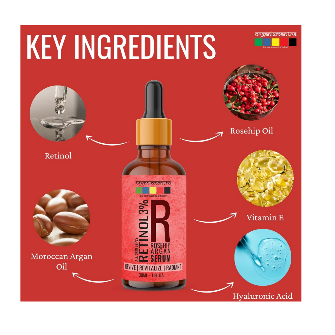 Organix Mantra Retinol Serum 3% for faceAbout the product:PERFECT ANTI-AGING SERUM - Antioxidants are known to slow the formation of wrinkles and f...