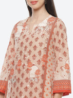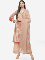 Biba Women Brown Ethnic Motifs Printed Kurta with Palazzos & With Dupatta