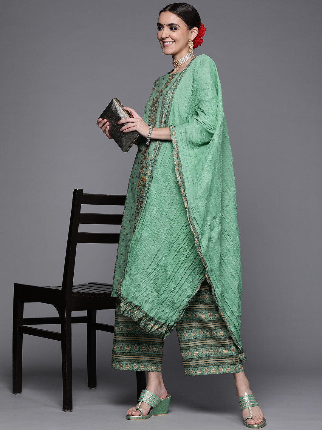Green printed Kurta with Palazzos with dupatta