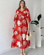 Pimu Front Slit Midi Dresses V-neck Designs For Women Party Wear - RedAbout the Product: Style(Anarkali, Flared, Straigth): Flared Top Fabric: Ra...