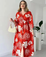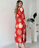 Pimu Front Slit Midi Dresses V-neck Designs For Women Party Wear - Red