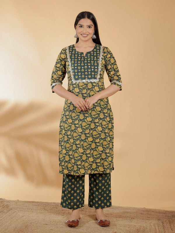 Aramya Green Soft Cotton Floral Straight Kurta for Women