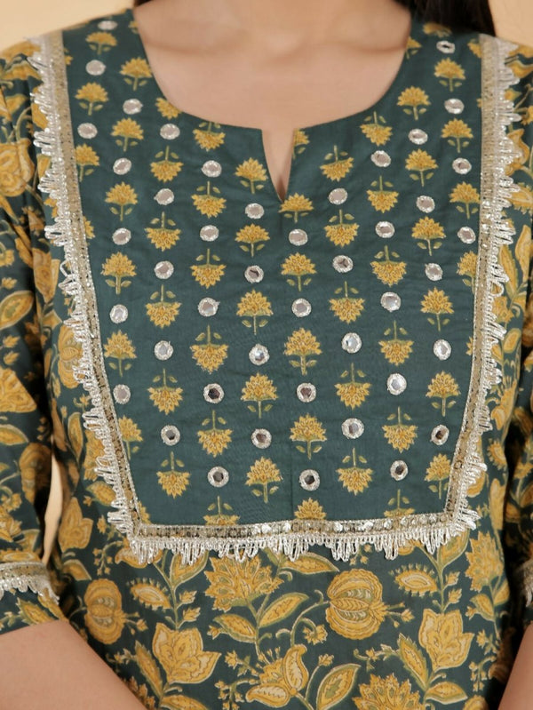 Aramya Green Soft Cotton Floral Straight Kurta for Women - M