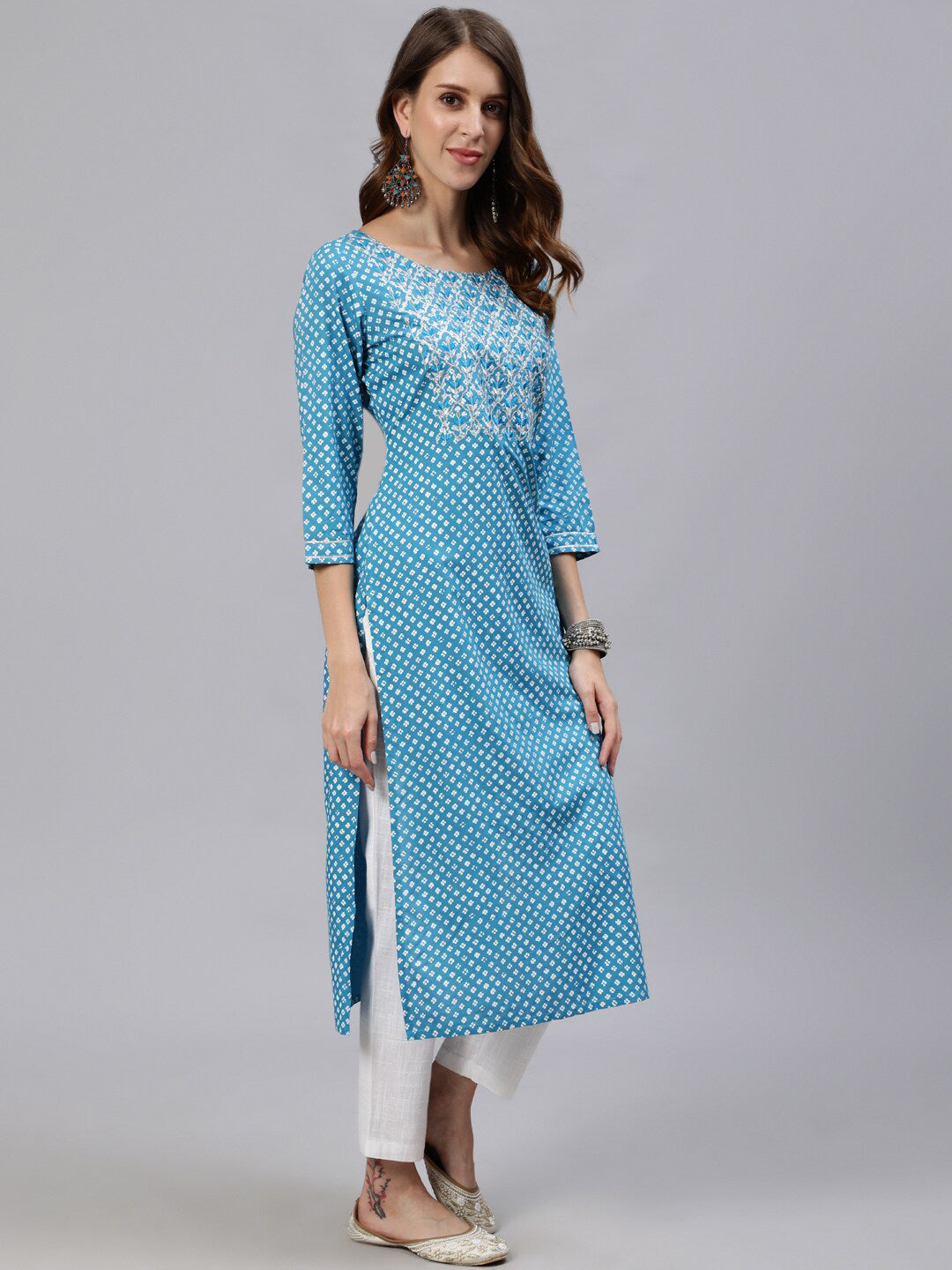 Jaipur Kurti Blue & White Floral Printed Women Kurta - Distacart