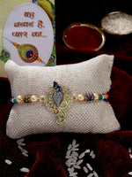NVR Men Gold-Toned Peacock Design Stone-Studdded Rakhi With Roli Chawal & Chocolate Style Note: Celebrate Raksha Bandhan with majestic elegance...