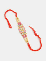 NVR Men Pink & Gold-Toned Kundan-Studded Rakhi With Roli Chawal & Chocolate