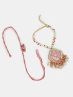 NVR Women & Men Set of 2 Pink Lotus Shape Kundan Stone-Studded & Beaded Bhaiya Bhabhi Rakhi With Roli Chawal & Chocolate