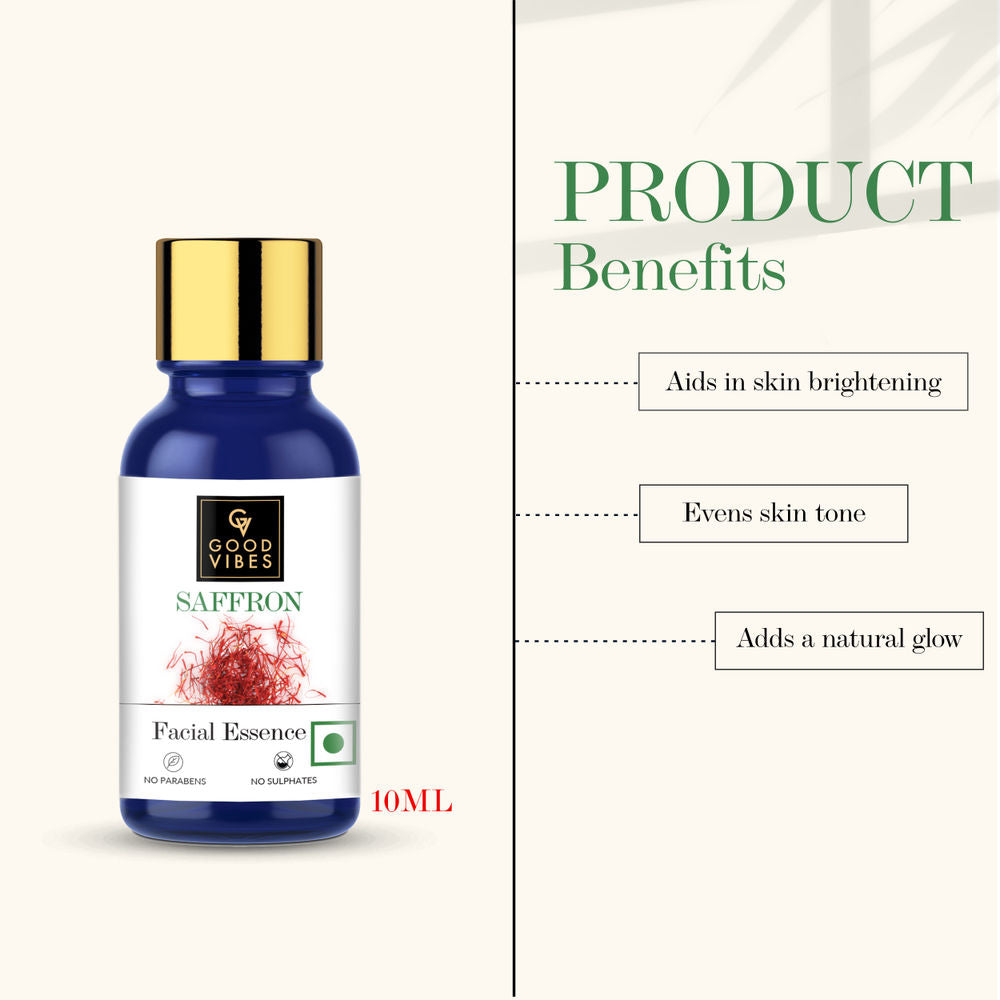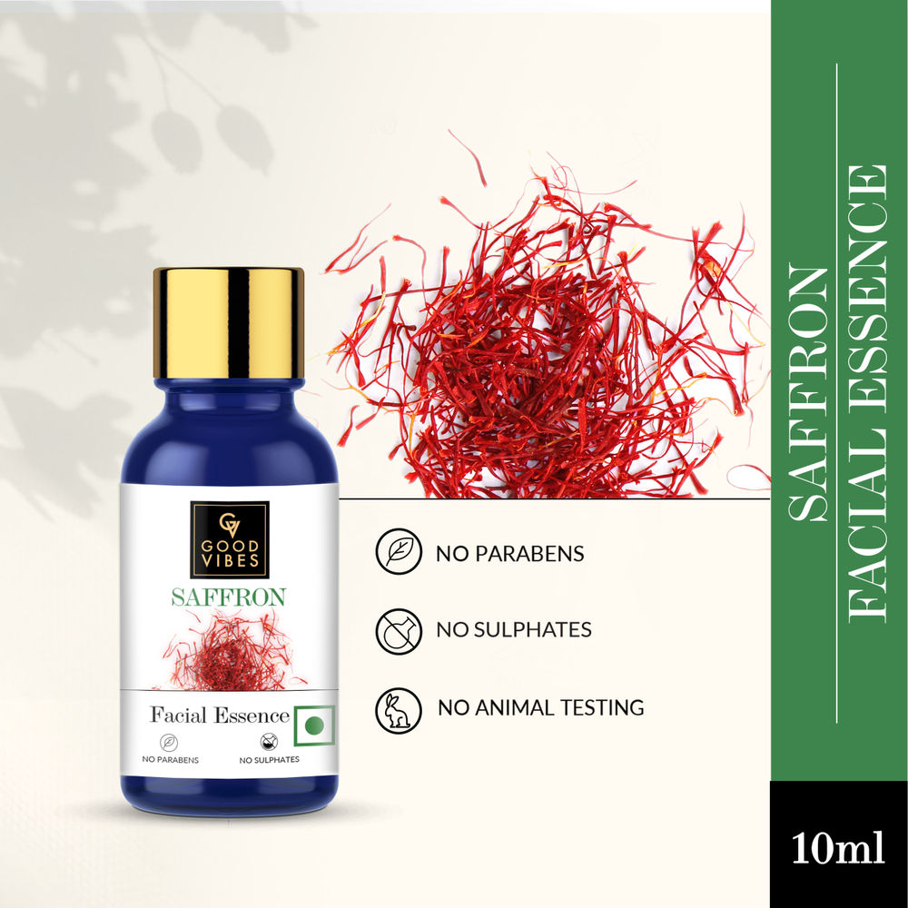Give your skin deep care treatment with Good Vibes Facial Essence. This formula has the ability to penetrate deep into your skin. Good Vibes Saffron Facial Essence. Saffron benefits skin because it contains many vitamins and antioxidants that are beneficial to the skin. It is anti-inflammatory and soothes skin. It is antifungal and can be used to treat acne