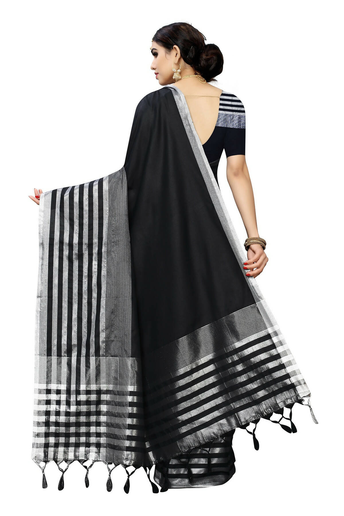 Vamika Black Cotton Silk Weaving Saree (Twitter Black)