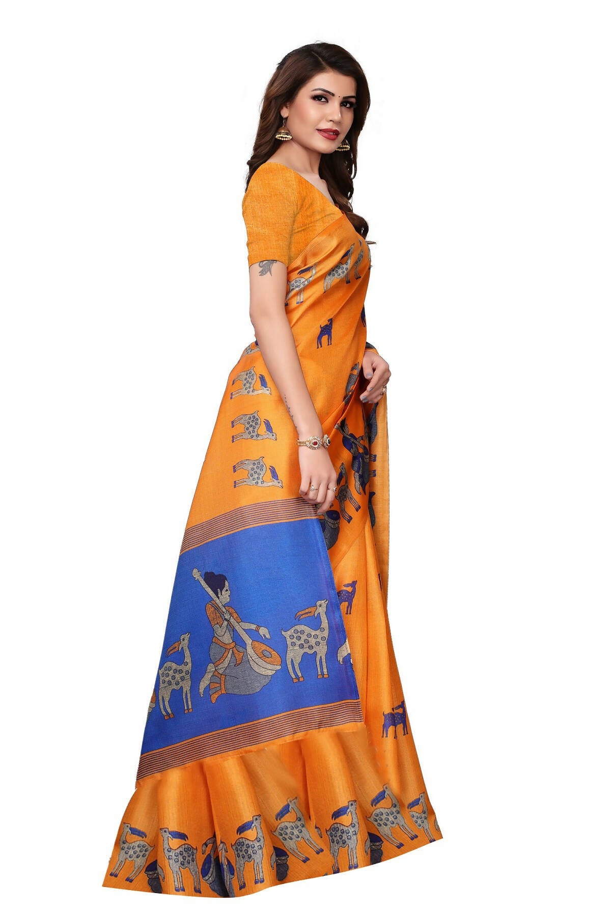 Vamika Orange Kalamkari With Jhalar Khadi Silk Saree - Distacart