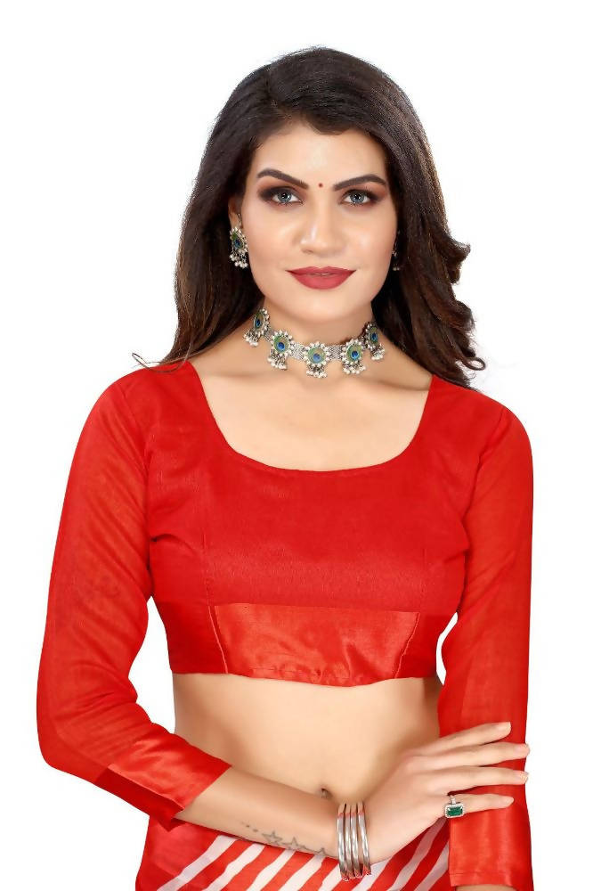 Vamika Red Linen Satin Border Saree Work: Satin Border Base Fabric: Linen Fabric Saree: Linen Fabric Blouse: Linen Saree Size: 5.50 Mtr Blous...