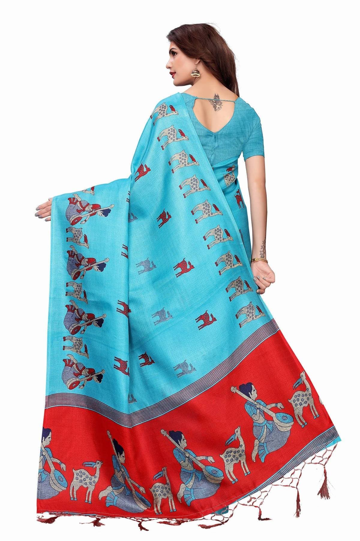Vamika Sky Blue Kalamkari With Jhalar Khadi Silk SareeWork: Kalamkari Print With JhalarPattern: Kalamkari With JhalarPackage Contents: Saree & ...