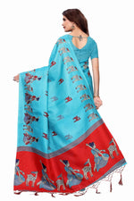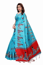 Vamika Sky Blue Kalamkari With Jhalar Khadi Silk Saree