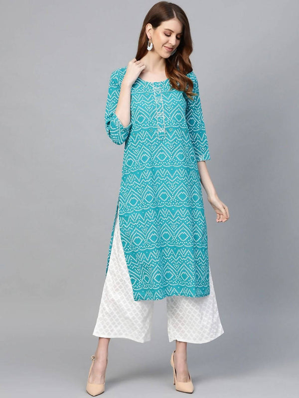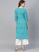 Vamika Sky Blue Printed Cotton Party/Casual Wear Kurta Set/Suit