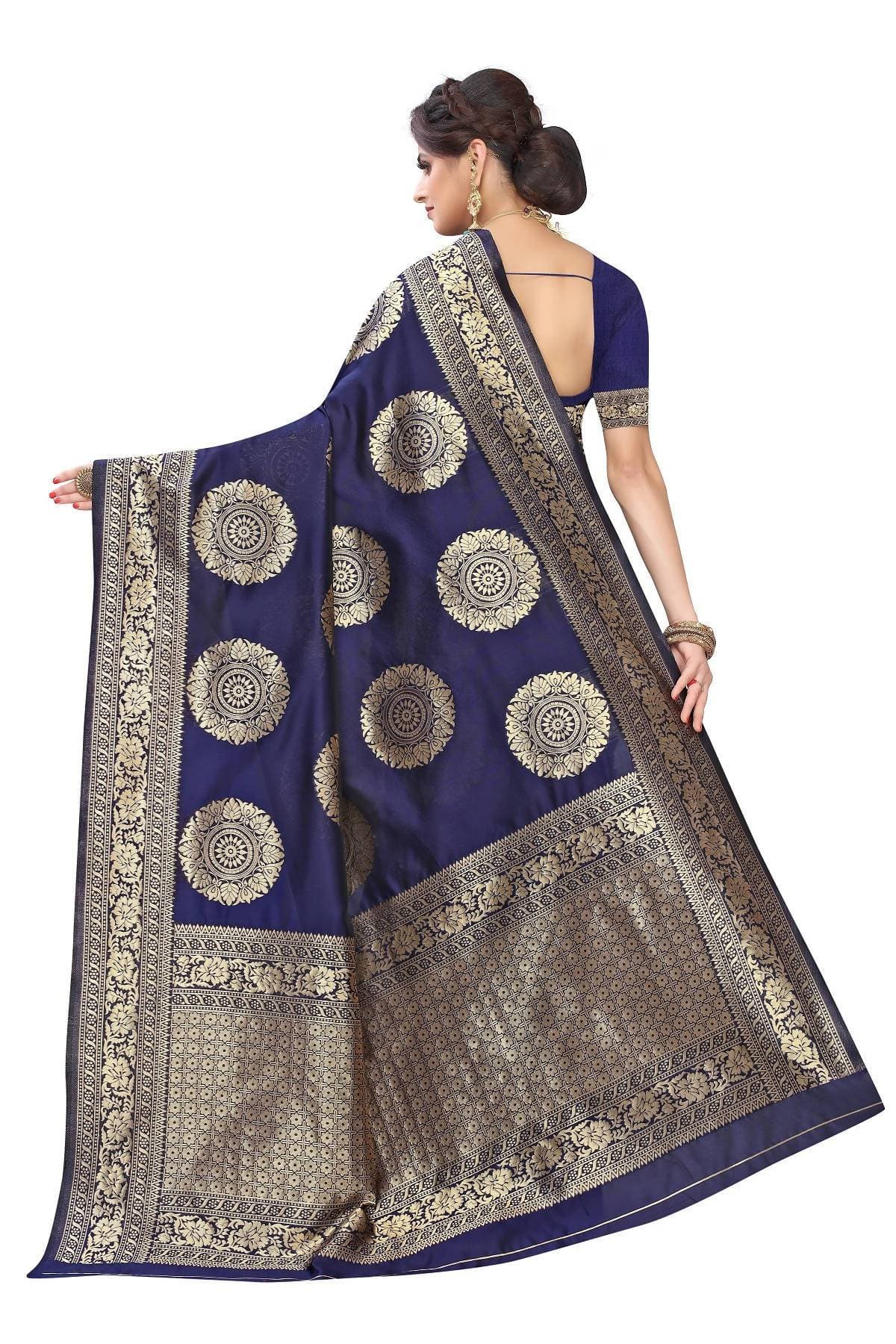 Vamika Traditional Banarasi Jacquard Weaving Navy Blue Saree