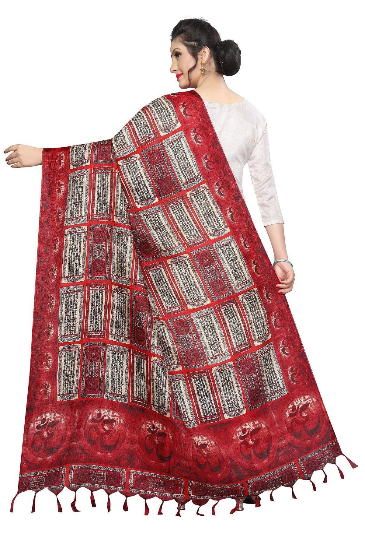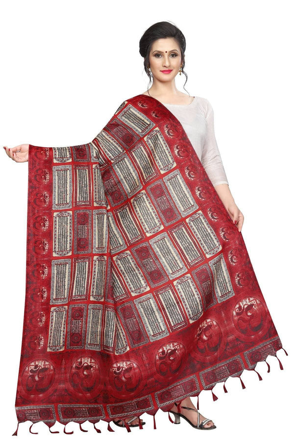 Vamika Traditional Red Printed Khadi Bhagalpuri Dupatta