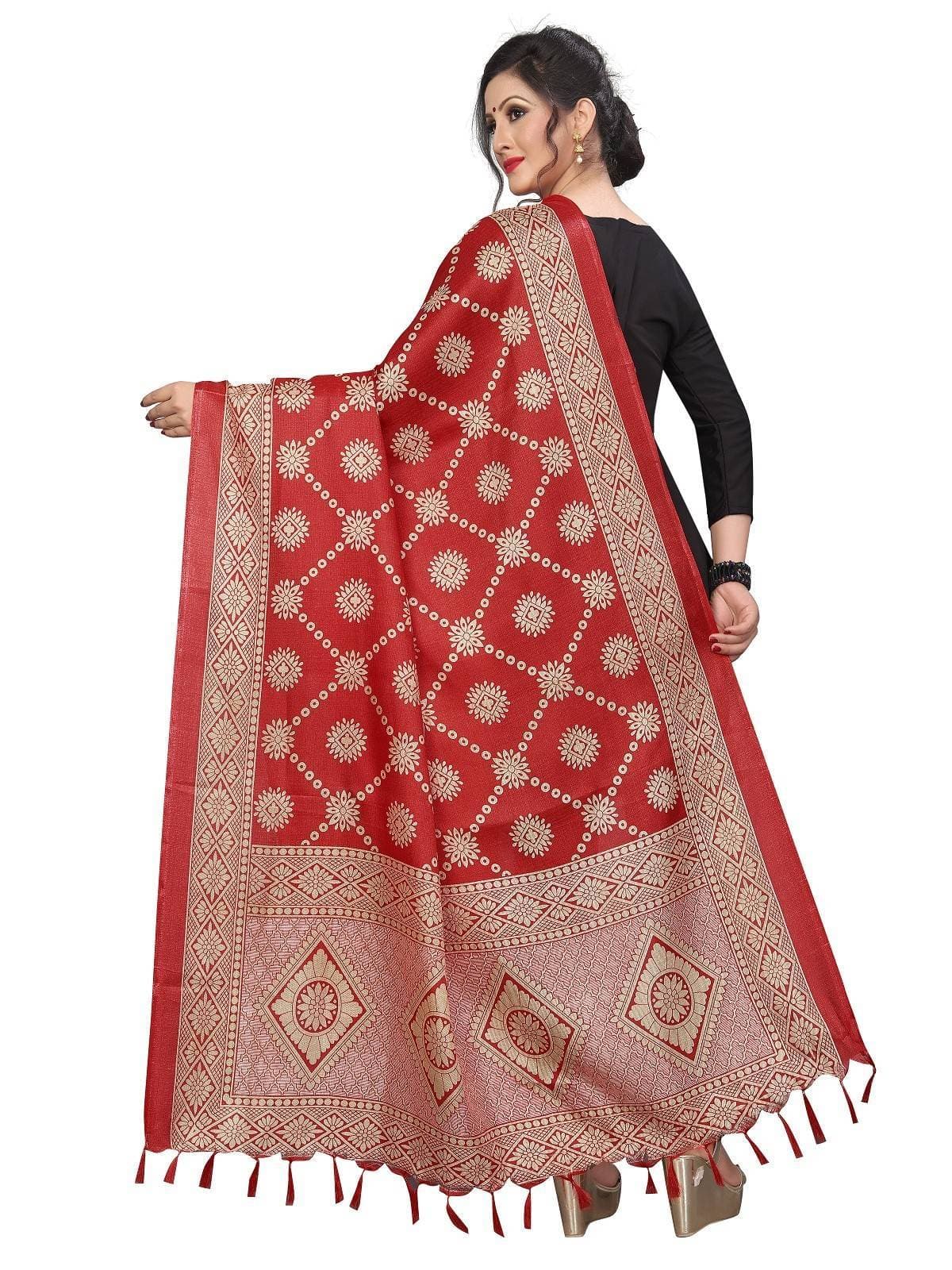 Vamika Traditional Wear Red Printed Khadi Bhagalpuri Dupatta: Work: Printed Base Fabric: Khadi Length: 86 Inches Width: 45 Inches Color: Red ...