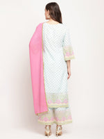 Ahalyaa Women Blue Ethnic Motifs Printed Regular Gotta Patti Kurta With Palazzos & Dupatta - XS
