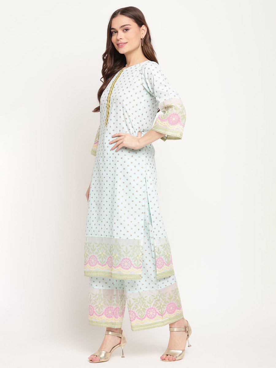 • Wear this statement kurta set and be the cynosure of all eyes. It includes an eye-catching printed kurta and cozy printed palazzos that lend comfort.