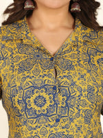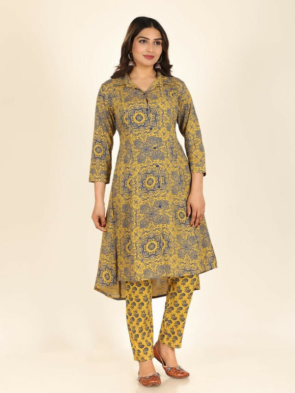 Aramya Yellow Rayon Geometric Print High Low Kurta Pant Set for Women Material: Rayon Color: Yellow Print: Geometric Occasion: Daily Wash Care: Mac...