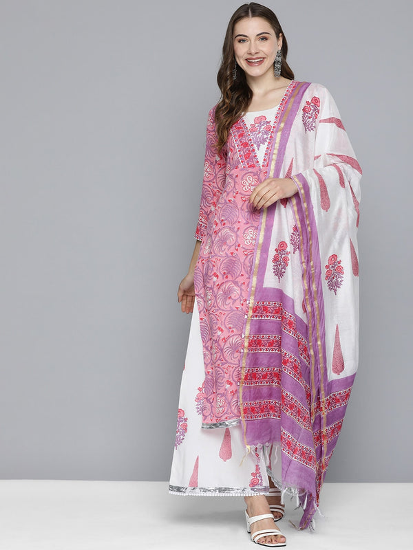 HERE&NOW Women Floral Printed Regular Pure Cotton Kurta with Palazzos & With Dupatta