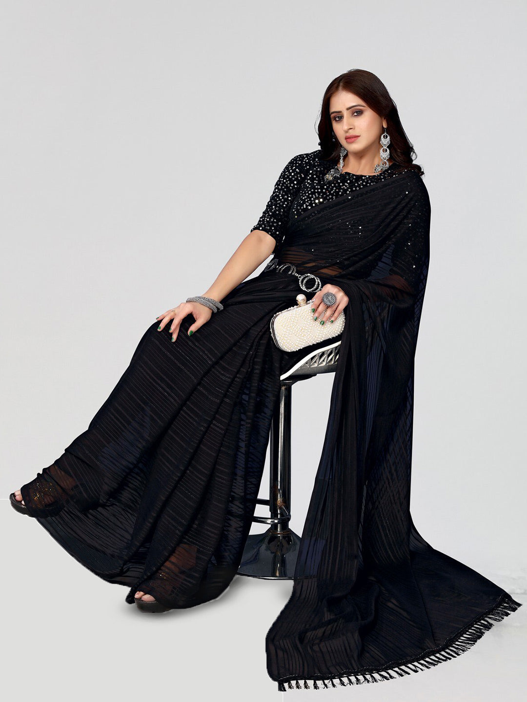 Kalini Striped Woven Design Saree Product Details Design Details Black saree Striped woven design saree with no border  The saree comes with ...