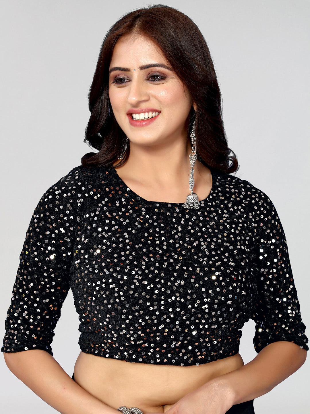 The blouse worn by the model might be for modelling purpose only. Check the image of the blouse piece to understand how the actual blouse piece looks like.
