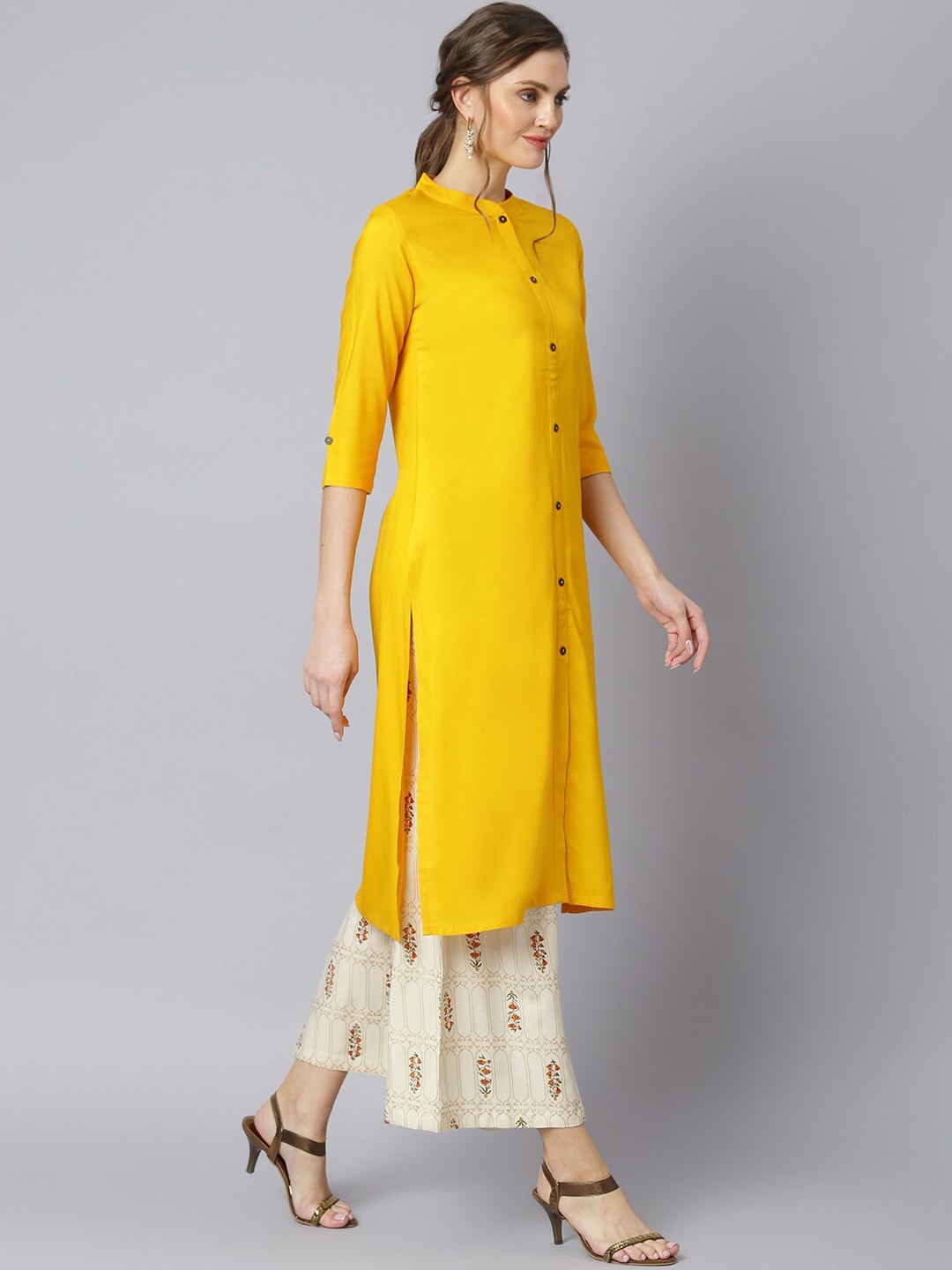 Yellow solid Kurta with Palazzos